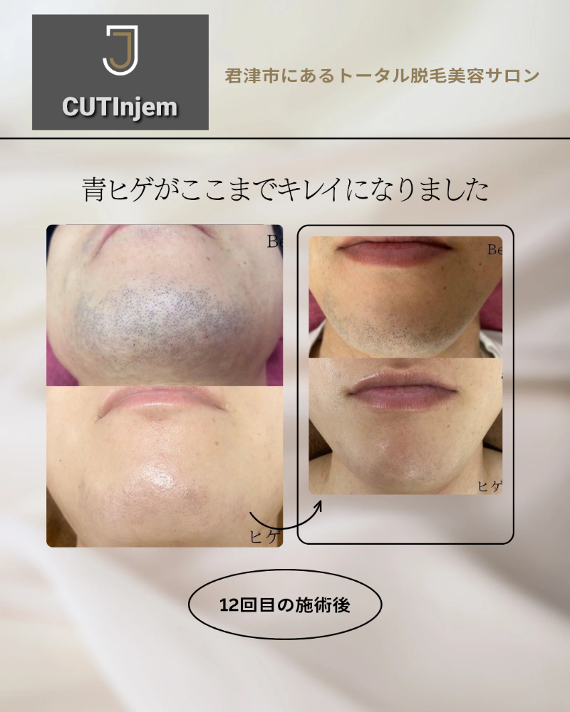 A: 一般的に1回目から効果を実感し始める方が多いです。毛周期があるため、希望の毛量などにもよりますが平均12回程度の施術を推奨しています。